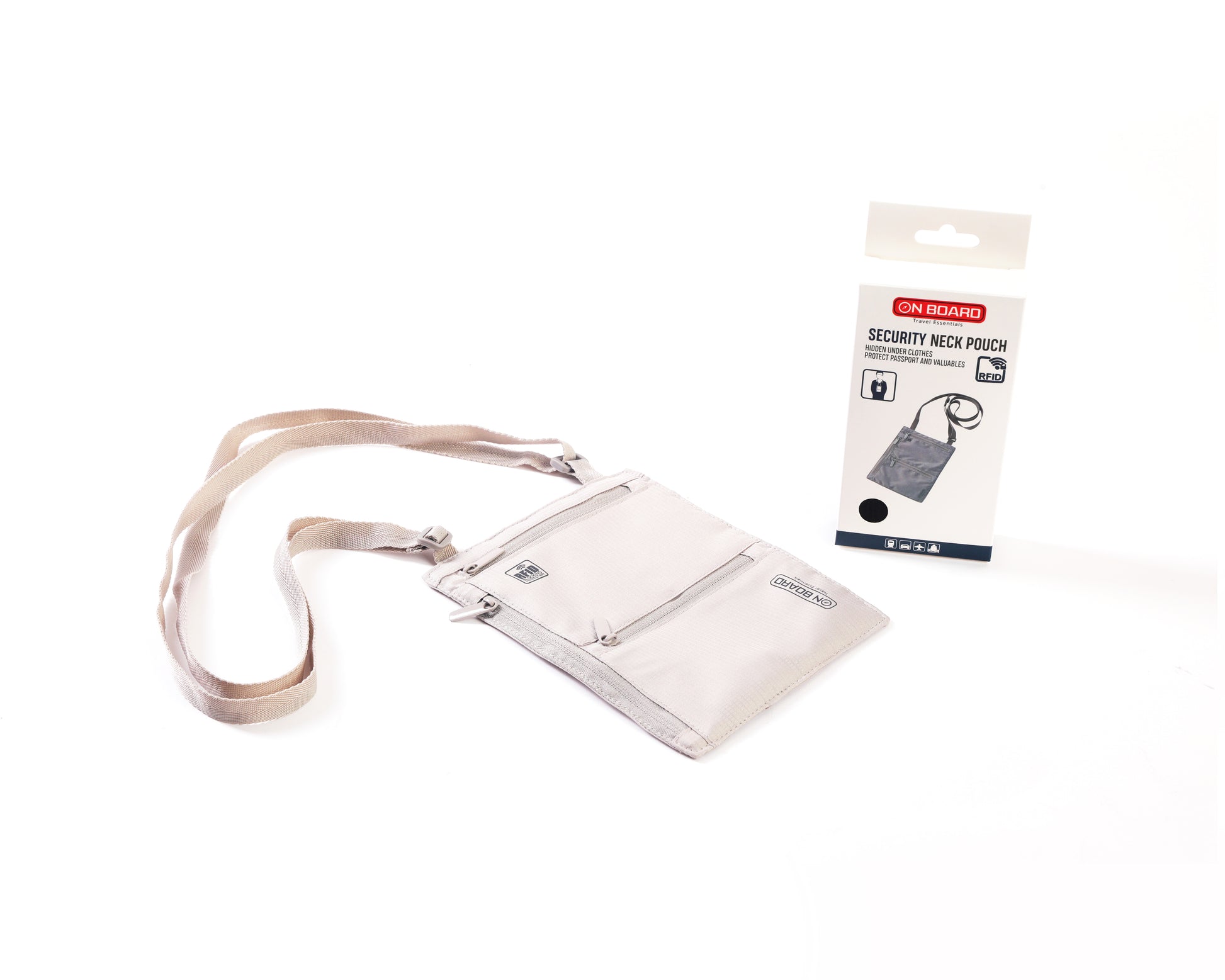 On Board RFID Security Neck Pouch - Light Gray